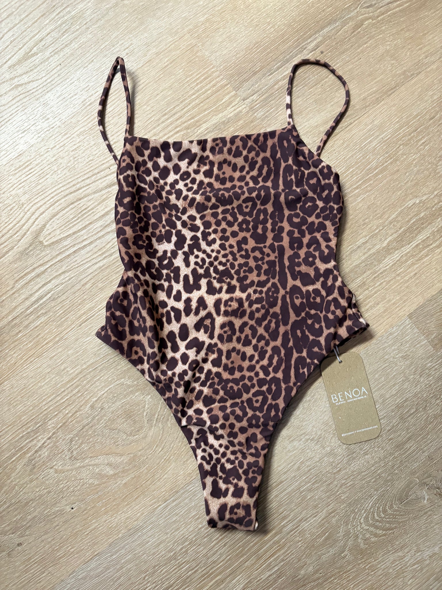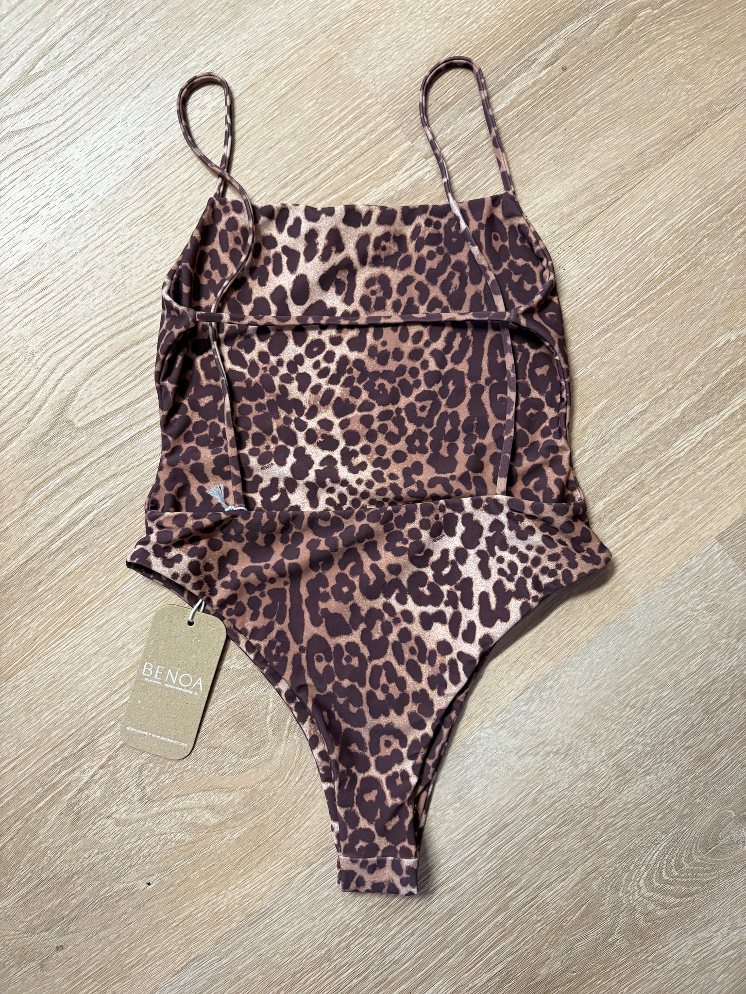 Skimpy high hipped one piece with cross strap detail. Hugs in