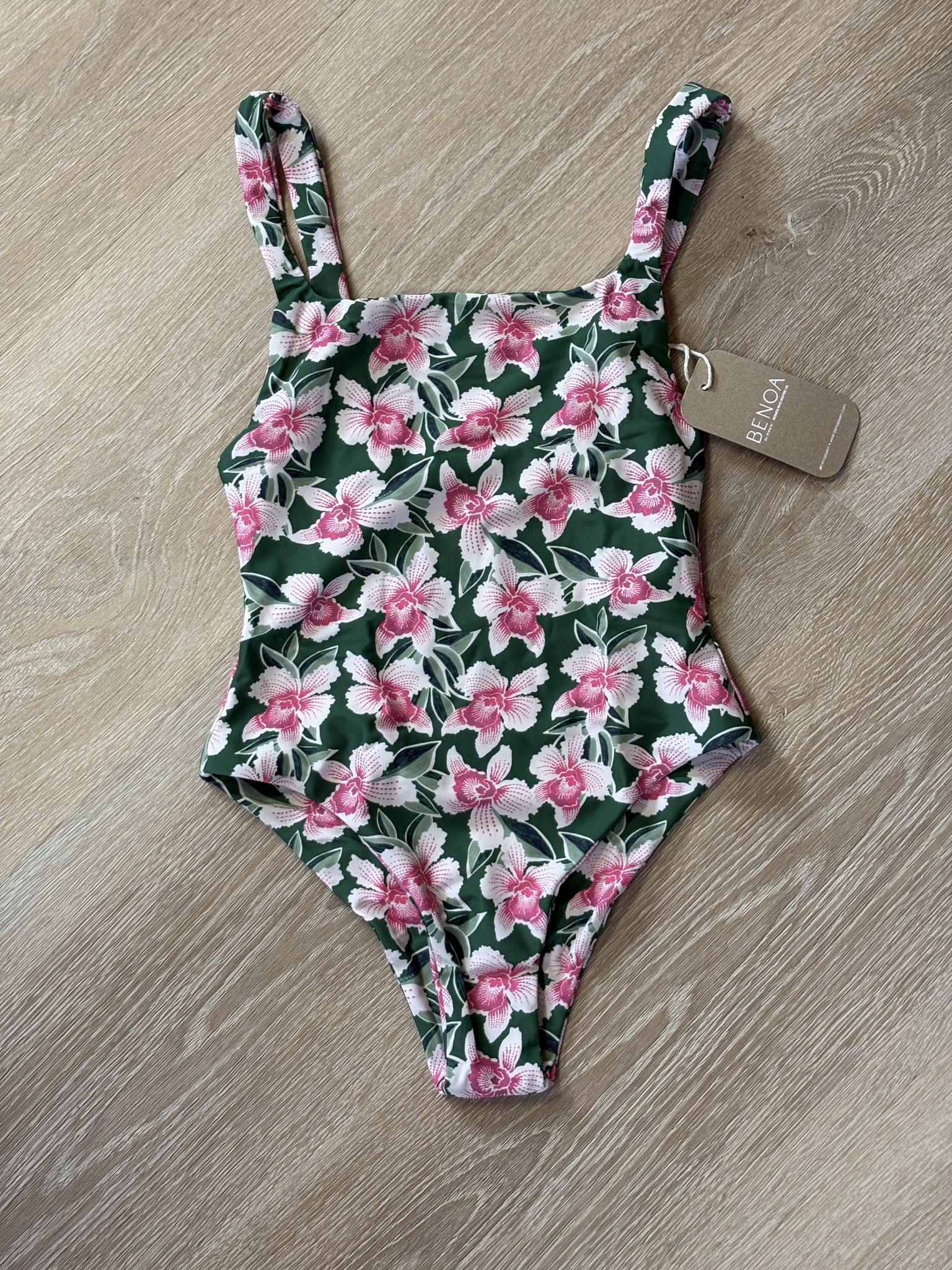 Staple one piece, square neck with mid-low cut back.Keeps everything in while hugging all the right places.