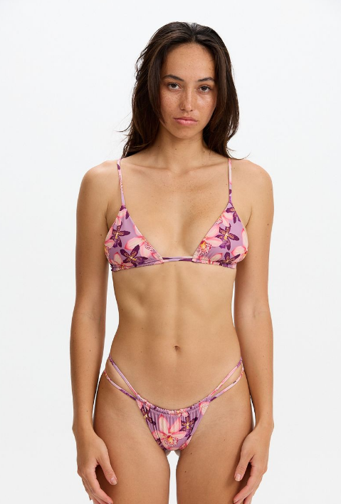 A double string basic triangle top, adjustable panels lets you choose your coverage. Anchored on one side but can be adjusted around the anchor. A past best seller.